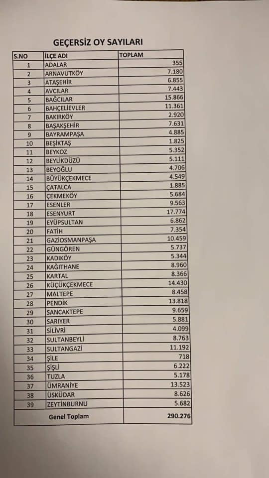 İşte iptal edilen geçersiz oyların ilçelere göre dağılımı...