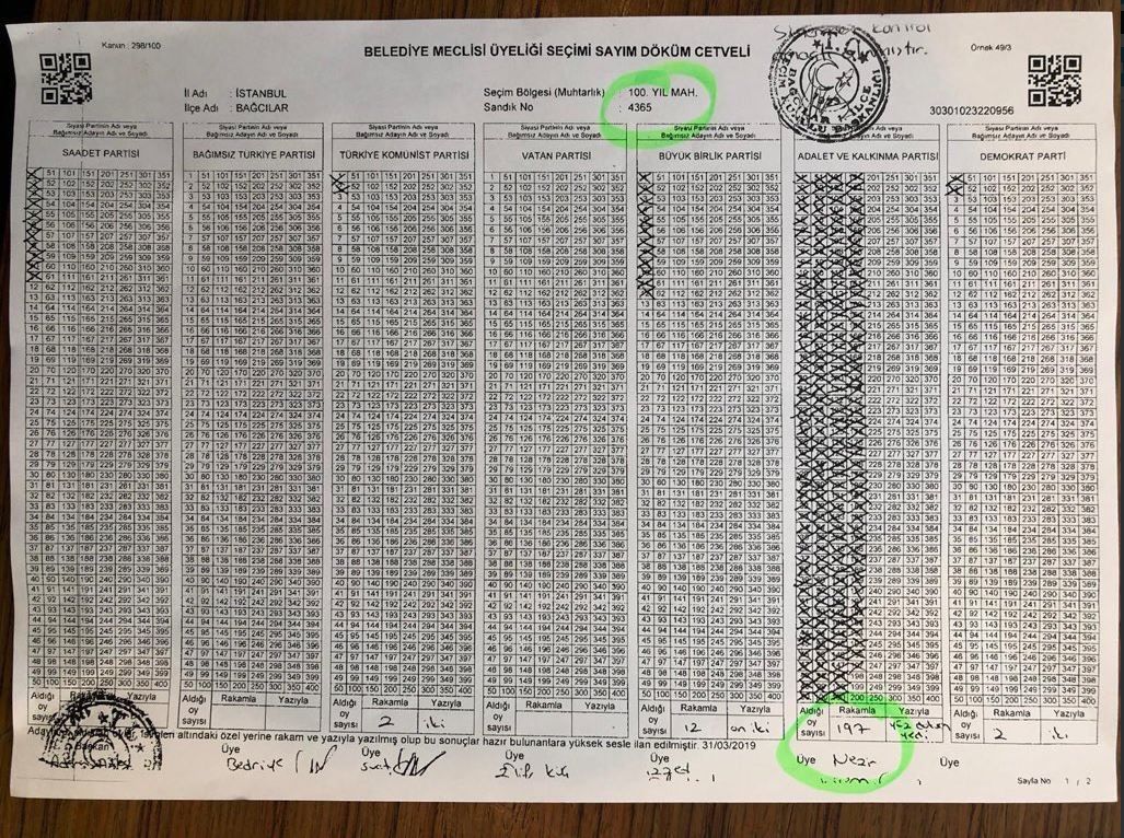 Bağcılar'da 4365 nolu sandıkta AK Parti 197 oy alıyor...