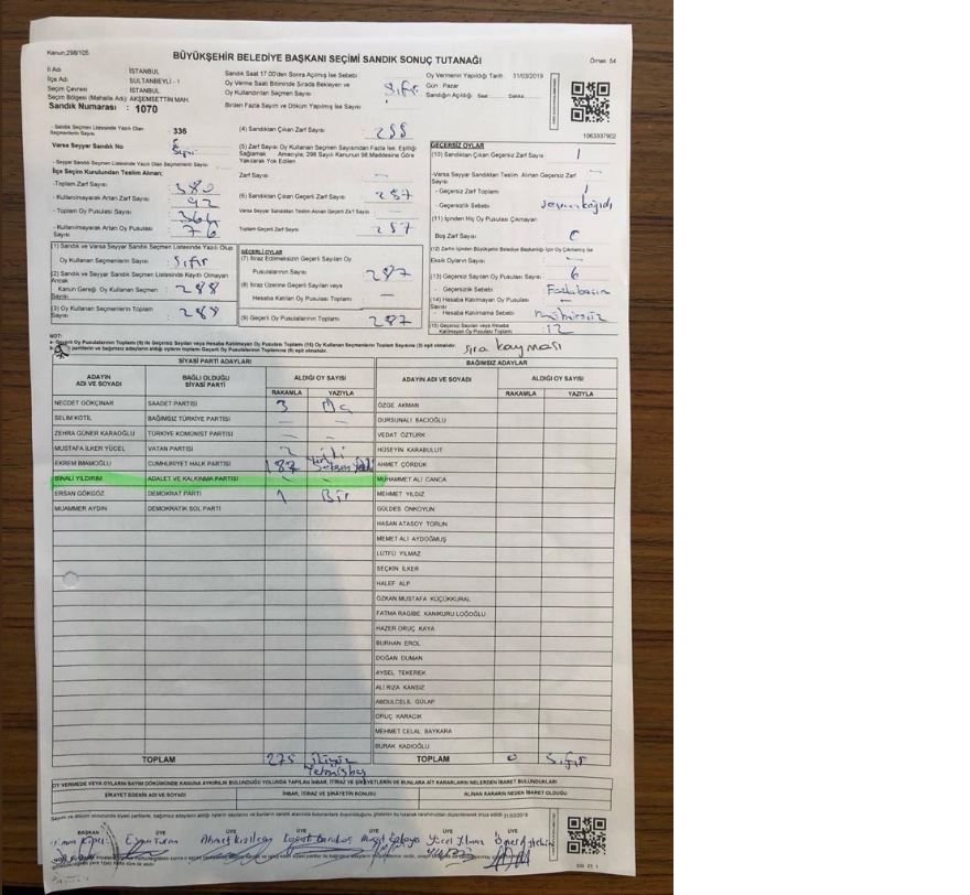 Yüksek Seçim Kurulu (YSK) ve Anadolu Ajansı verilerine göre İstanbul’da CHP’nin adayı Ekrem İmamoğlu önde gözükse de AK Parti sandıklarda bir çok usulsüzlük tespit etti. Farkı bölgelerdeki birçok sandıkta Yıldırım’ın aldığı oylar ya eksik yazılmış ya da hiç yazılmamış.