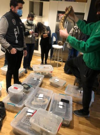 2 ilçedeki adreslere operasyon düzenleyen ekipler yaptıkları aramalarda 21 adet piton, 12 boa ile 3 Hognose yılanı, 4 Tarantula, 1 Gecko, 1 Savanna monitör, 1 Çin Ejderi, 40 yılan, 25 sürüngen ele geçirdi. Hayvanların ticaretini yapan kişiye 17 bin 400 lira para cezası kesilirken, canlılara el konuldu. Hayvanların hayvanat bahçesine götürüldüğü öğrenildi.
