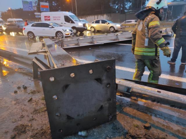 İstanbul'da TEM Bağlantı yolunda yön tabelası devrildi! Araçlar kaza yaptı