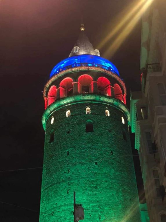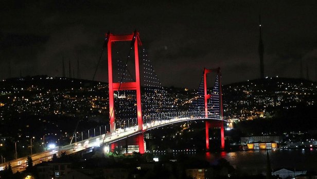 Azerbaycan Cumhuriyeti'nin ilan edilmesinin 102. yılı dolayısıyla 15 Temmuz Şehitler, Fatih Sultan Mehmet ve Yavuz Sultan Selim köprüleri ile Galata Kulesi, Azerbaycan bayrağının renkleriyle ışıklandırıldı.