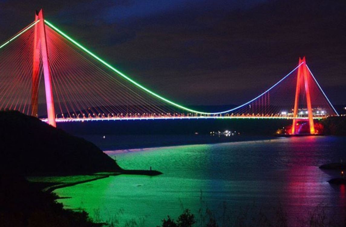 Önemli günlerde renk ve ışık gösterileriyle aydınlatılan köprüler, bu kez Azerbaycan Cumhuriyeti'nin bağımsızlık yıl dönümü dolayısıyla Azerbaycan bayrağının renklerine büründürüldü.