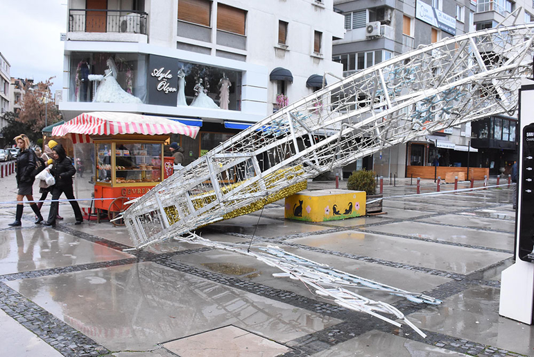 Konak Belediyesi'nin yılbaşı kutlamaları çerçevesinde yaptığı süslemelerden olan Alsancak'taki Şevket Özçelik Sokak'ta bulunan ışıklı kemer, saatte 35 kilometre hızla esen şiddetli rüzgâr nedeniyle gece saatlerinde devrildi. Gazi İlköğretim Okulu’nun köşesinde bulunan ve gündüz saatlerinde binlerce kişinin geçtiği sokaktaki kemerin gece devrilmesi olası bir faciayı önledi. Konak Belediyesi zabıta ekipleri, kemerin etrafına güvenlik şeridi çekerek önlem aldı.