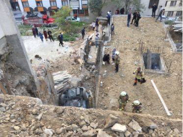 Kadın sürücünün sağlık durumunun iyi olduğu öğrenilirken, araç ise vinç yardımıyla inşaat alanından çıkartıldı.