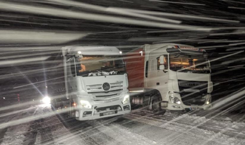 Erken gelen kış yolların kapanmasına neden oldu. Sahara Geçidi'nde kar ve tipi nedeniyle TIR'lar mahsur kaldı