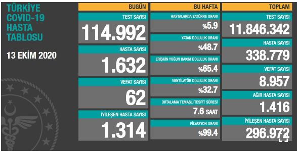 Açıklanan 13 Ekim günlük koronavirs salgını tablosunda artan ölüm ve hasta sayısı endişe veriyor.