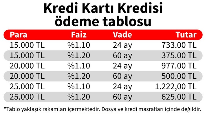 Erdoğan'ın açıklamasının ardından konuya ilişkin bankadan da açıklama geldi. Ziraat Bankası kredi kartı borçlusuna 24 aya kadar aylık yüzde 1.10, 60 aya kadar aylık yüzde 1.20 faizle bireysel ihtiyaç kredisi kullandıracağını duyurdu.