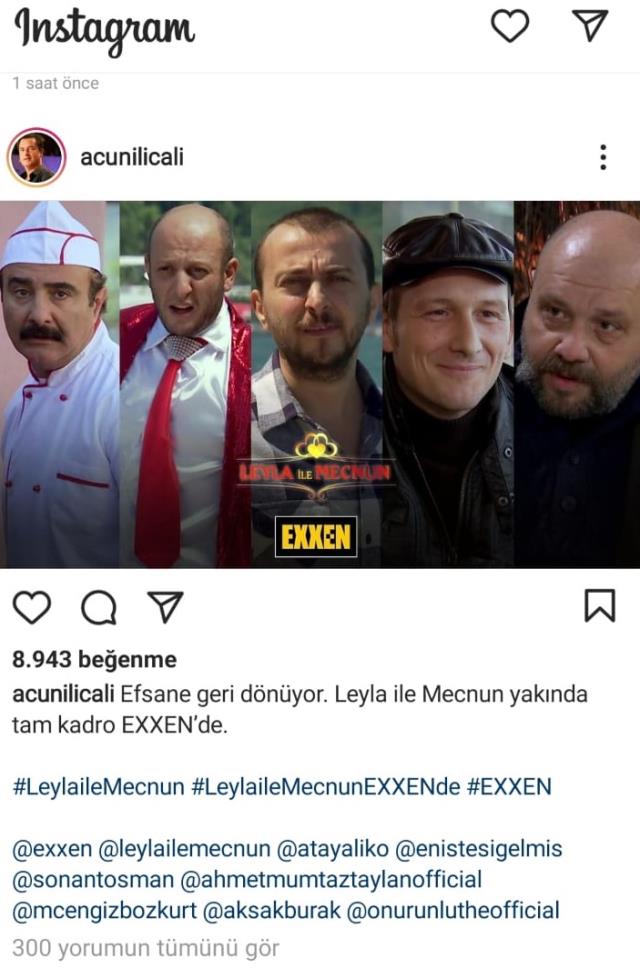 Acun Ilıcalı'nın sahibi olduğu Exxen'de yayınlanacak diziyle ilgili hayranlarını heyecanlandıran gelişmeler yaşandı. Acun Ilıcalı'nın ve Exxen'in resmi Instagram hesabından paylaşılan gönderide, "Efsane geri dönüyor! Leyla ile Mecnun yakında tam kadro Exxen'de" ifadeleri kullanıldı.