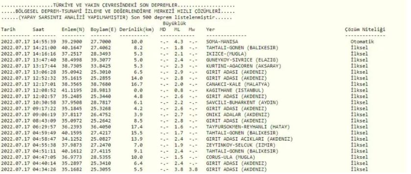 AFAD tarafından yapılan açıklamada, Manisa/Soma'da saat, 14.55'te 4.3 büyüklüğünde deprem meydana geldi.