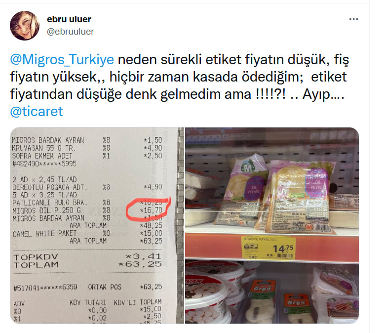 Bir tepki de fiyat indirimine yönelikti. Bir müşterisi de “neden sürekli etiket fiyatın düşük, fiş fiyatın yüksek,, hiçbir zaman kasada ödediğim; etiket fiyatından düşüğe denk gelmedim ama !!!!?! .. Ayıp…” diye yazdı.