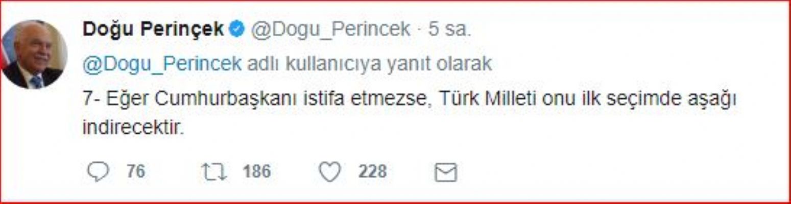 “Türk askerini zavallı göstermeye çalışan Cumhurbaşkanlığı hangi silahlı güçle Türkiye’yi yönetecek? Eğer o afişleri kaldırmazsa, Cumhurbaşkanı derhal istifa etmelidir! Eğer Cumhurbaşkanı istifa etmezse, Türk Milleti onu ilk seçimde aşağı indirecektir.”