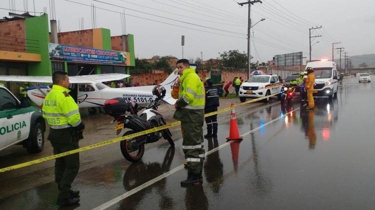 Kolombiya’da gündüz saatlerinde aniden bastıran sağanak nedeniyle Cessna 172 tipi küçük bir uçak otoyola zorunlu iniş yaptı.
