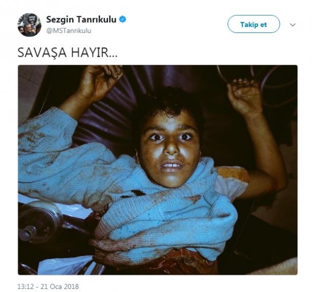 Bu propaganda da "Türkiye işgalci bir devlettir", "TSK katil bir ordudur", "TSK sivilleri katlediyor", "Çocuklar ölüyor" gibi ifadeler kullanılıyor. CHP İstanbul Milletvekili Sezgin Tanrıkulu da sosyal medya hesabından Afrin harekatına karşı olduğunu belirterek, Zeytin Dalı Harekatı'nda yaralandığı öne sürülen bir çocuk fotoğrafı paylaştı. CHP'li Tanrıkulu daha önce de terörle mücadelede kullanılan yerli İnsansız Hava Aracı (İHA) ve Silahlı İnsansız Hava Araçlarına (SİHA) karşı açıklamalarda bulunmuştu.
