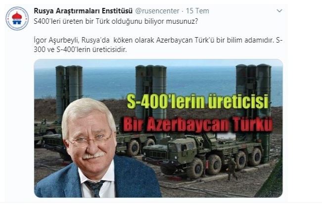 Konu ile ilgili sosyal medyadan paylaşımda bulunan Rusya Araştırmaları Enstitüsü de "S400'leri üreten bir Türk olduğunu biliyor musunuz? İgor Aşurbeyli, Rusya'da köken olarak Azerbaycan Türk'ü bir bilim adamıdır. S-300 ve S-400'lerin üreticisidir" denildi.