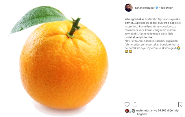 Şahan’ın yaptığı paylaşımda ‘Keşke ülkemizde daha fazla portakal yetiştirilebilse’ sözleri ise dikkatlerden kaçmadı.