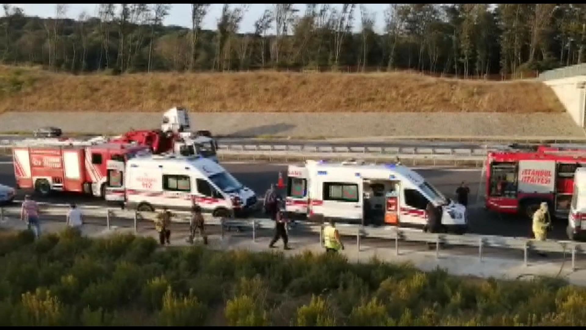İstanbul Kuzey Marmara Otoyolu'nda, İstanbul Havalimanı istikametinde seyreden bir yolcu otobüsü üst geçide çarptı.