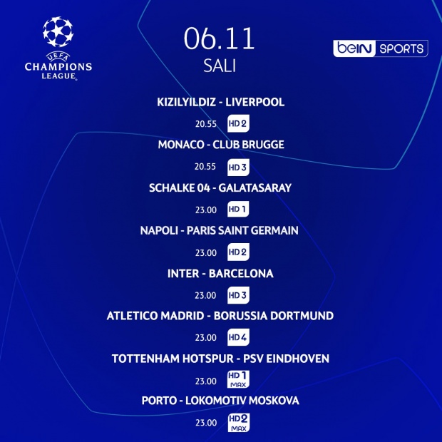 Şampiyonlar Ligi D Grubu 4. haftasında oynanacak maçlar beIN SPORTS'tan yayınlanacak.