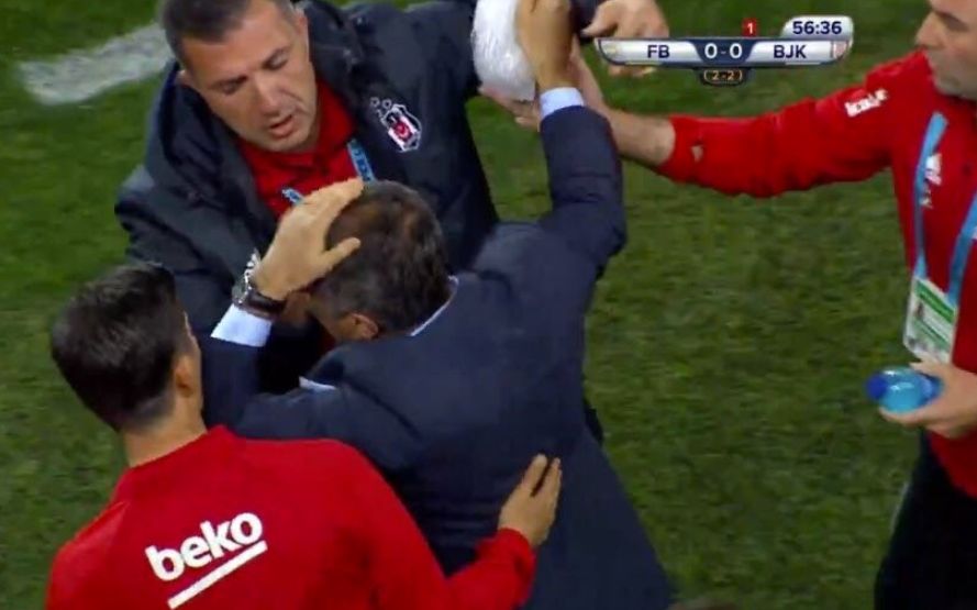 Fenerbahçe Beşiktaş maçında büyük kaos yaşanıyor. Şenol Güneş’in kafasına cisimler atıldı ve yere yığıldı. Şenol Güneş’in kafasına 5 dikiş atıldığı ve hastaneye kaldırıldığı öğrenildi.