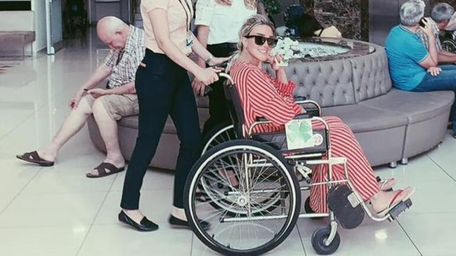 Önceki üç hamileliğinde bebeğini kaybeden ünlü sunucu, 1.5 ay tekerli sandalye kullanacak.