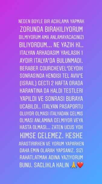 Yaşanan gelişmelerin ardından Subaşı Instagram hesabından önce bir yazıyla açıklama yaptı: