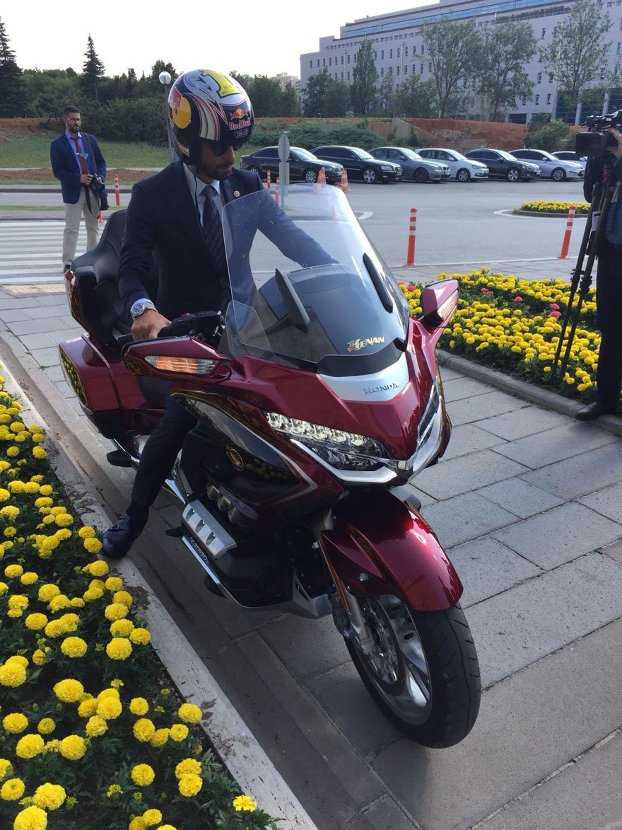 TBMM’ye Lamborghini marka yarış arabası ile gelen AK Parti Sakarya Milletvekili Kenan Sofuoğlu bugün Meclis’te yapılan yemin törenine ise Honda marka motor ile gelerek katıldı.