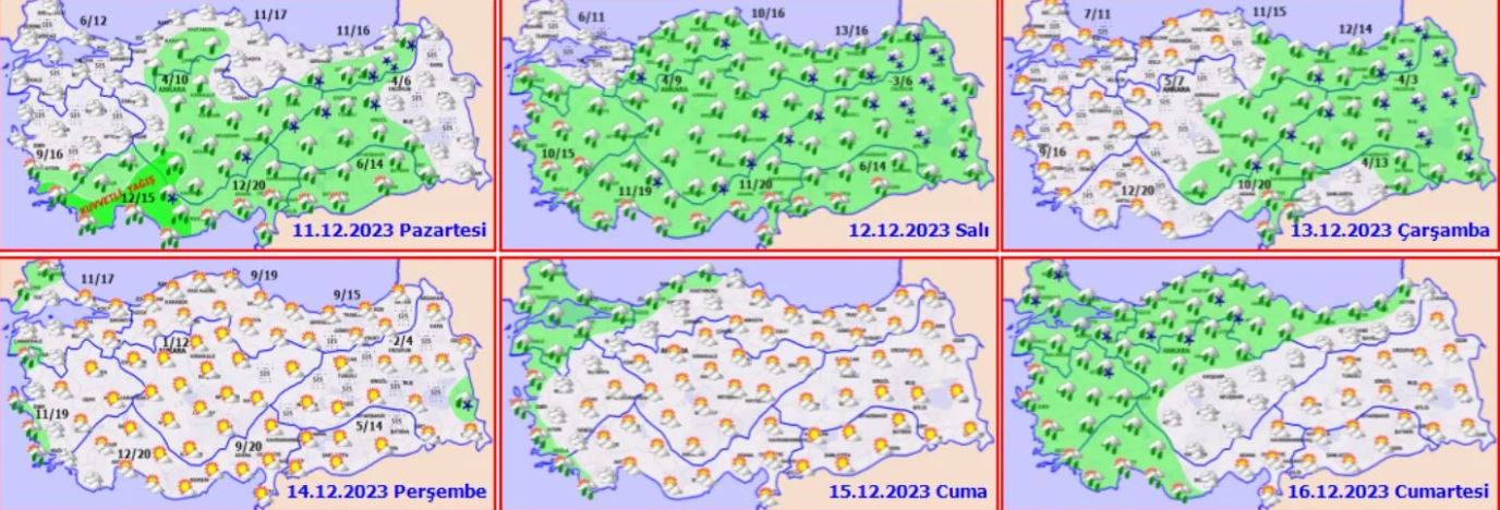 Meteoroloji Genel Müdürlüğü'nün hava durumu haritası gün gün şöyle: