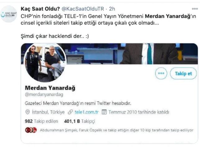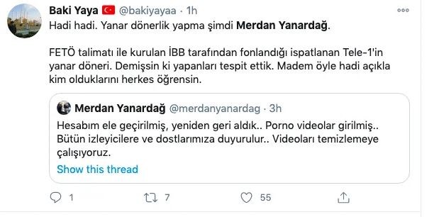 Tele 1'in Genel Yayın Yönetmeni Merdan Yanardağ'ın sosyal medya hesabından p*rno içerikli paylaşımlar yapıldı.