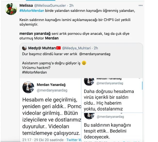 Bir süre sonra "daha doğrusu virüs içerikli bir saldırı oldu" dedi.