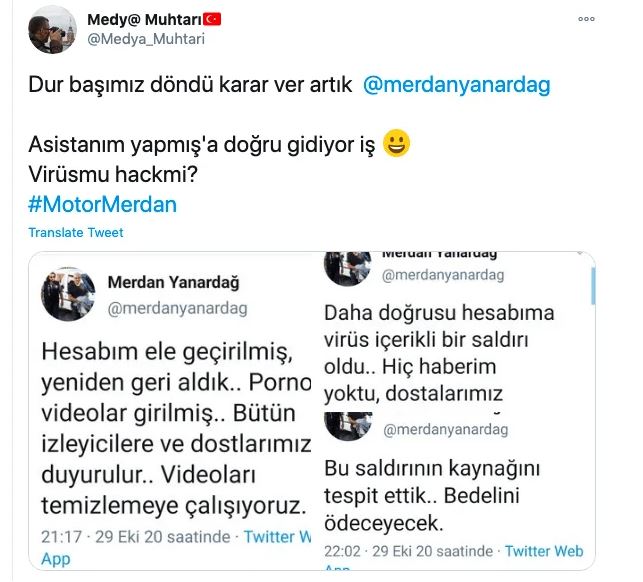 Yanardağ, bir süre sonra hesabının hacklendiğini ileri sürdü.