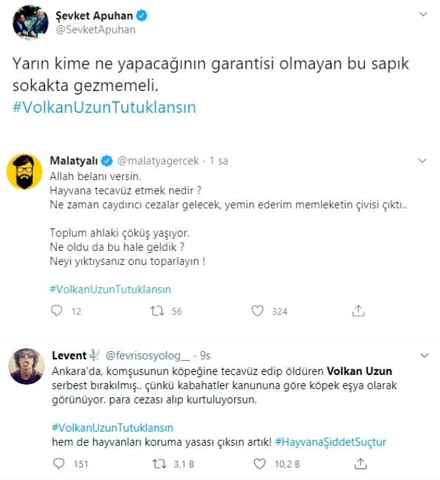 Ankara'da emanet edilen köpeğe tecavüz ederek ölümüne sebep olan Volkan Uzun isimli şahıs gözaltına alındıktan sonra serbest bırakıldı.