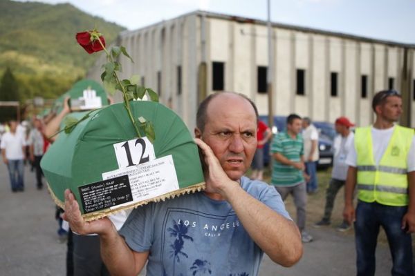 Srebrenitsa kurbanlarının tabutları böyle taşındı