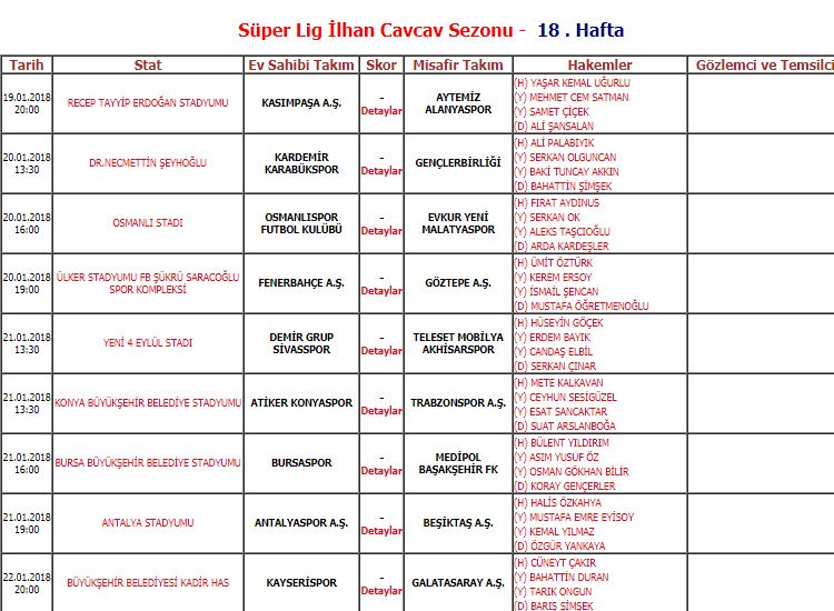 Süper Lig’de 18. Haftanın ise hakemleri açıklandı.