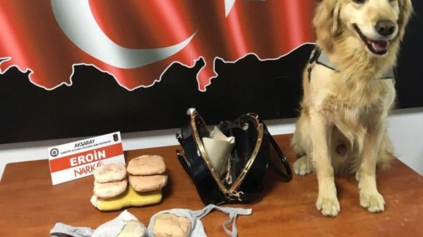 Aksaray'da polis tarafından durdurulan otobüste yapılan aramada, yolculardan Y. Dündar'ın sütyeni ve kol çantasında toplam 2 kilo 298 gram eroin ele geçirildi.