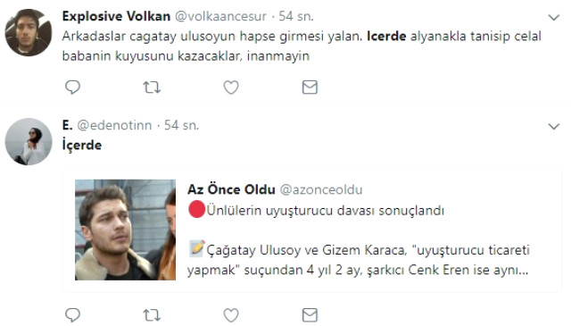 Ünlü oyuncu Çağatay Ulusoy hakkında verilen hapis cezasının ardından sosyal medya kullanıcıları, Twitter’da Çağatay Ulusoy ismini trend listesinde birinci sıraya yerleştirdi.