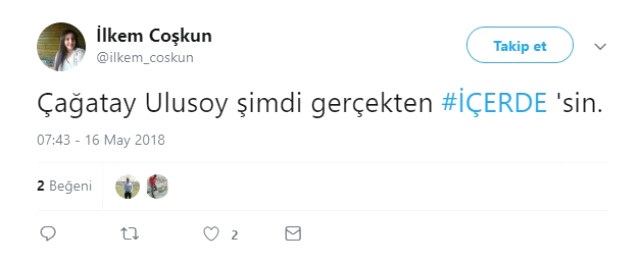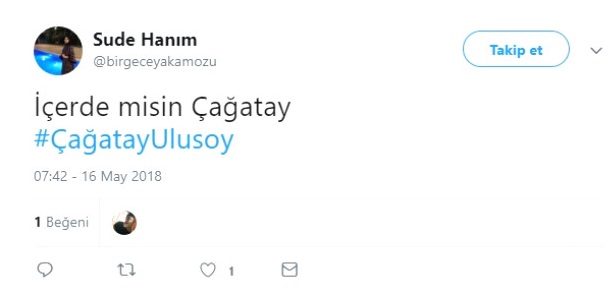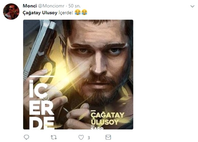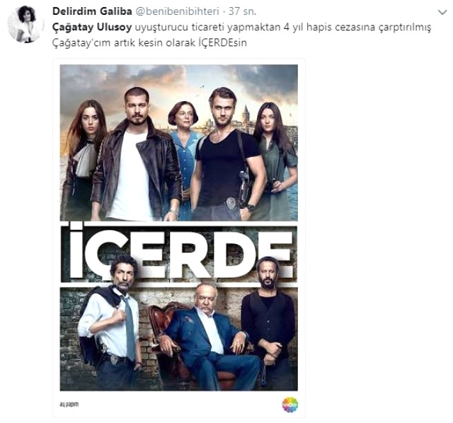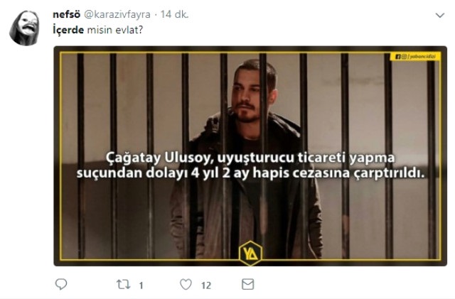 Ünlü oyuncunun daha önce oynadığı "İçerde" dizisine atıf yapan sosyal medya kullanıcıları, Çağatay Ulusoy’a "İçerde misin?" diye sordu.