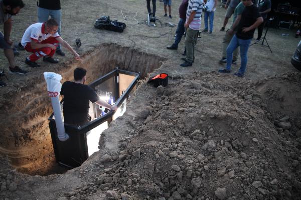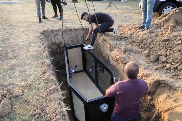 İstanbul'da 25 yaşındaki Youtuber Muhammed Bahçecik, özel olarak tasarlanan cam tabuta girip, Tuzla'da toprağa gömüldü.