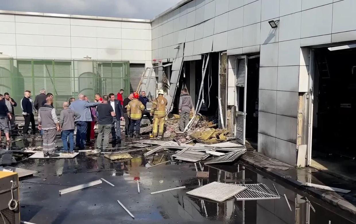 Patlamayla birlikte yangın çıkarken, binadan kopan parçalar etrafa savruldu.