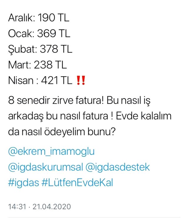 Birçok kişi tepkisini sosyal medyadan İBB ve İGDAŞ'ı etiketleyerek gösterdi. Vatandaşların İstanbul'da faturaların neden okunmadığını sordu.