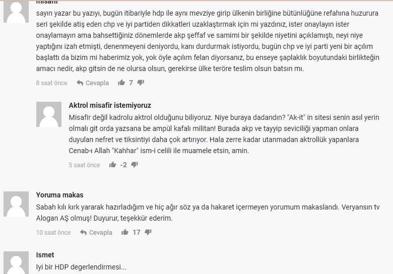 Veryansın okurlarını serseme çevirecek yazıya yazılan yorumlarda ise "Veryansın tv Alogan AŞ olmuş!" diyenler de var.