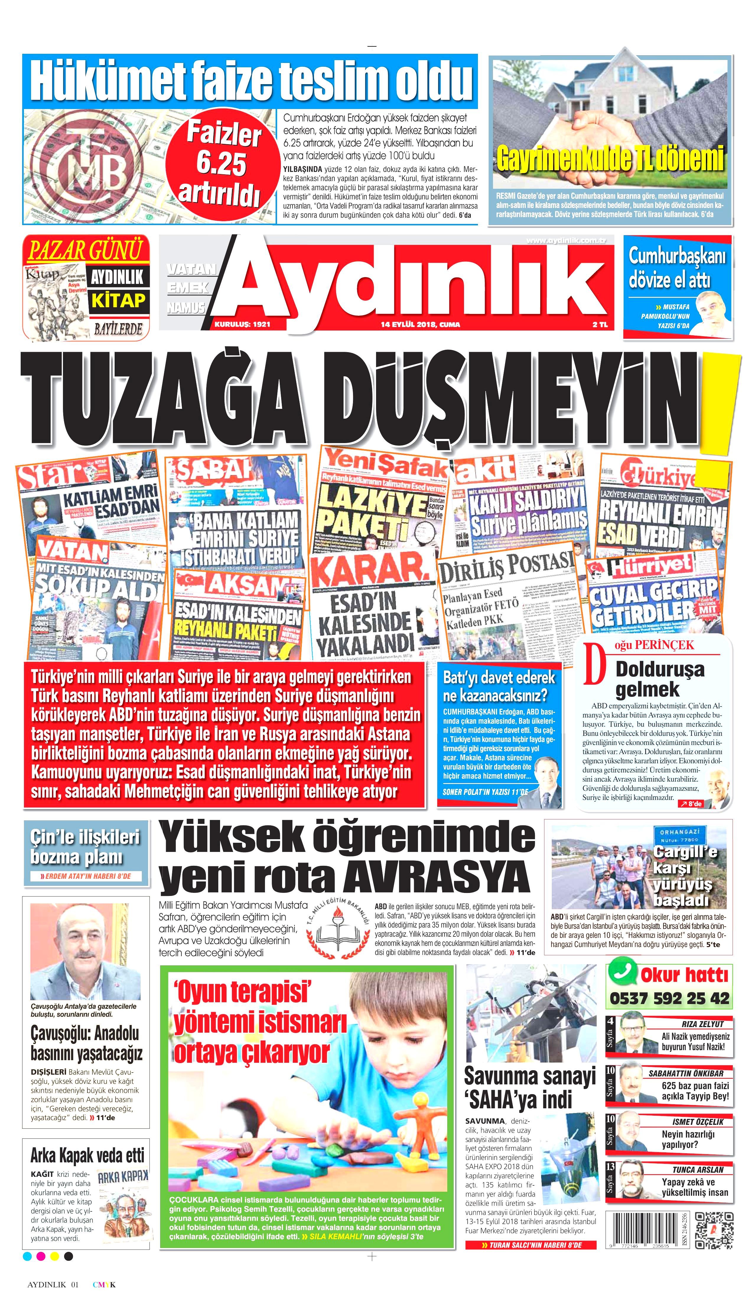 Bu arada Aydınlık gazetesi de "Tuzağa düşmeyin" manşetiyle çıktı. Aydınlık haberinde şu ifadelere yer verdi: