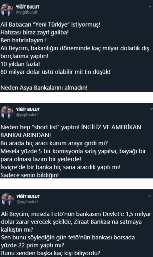 Yiğit Bulut, sosyal medya hesabından yaptığı açıklamada, Babacan'a birtakım sorular yöneltti.