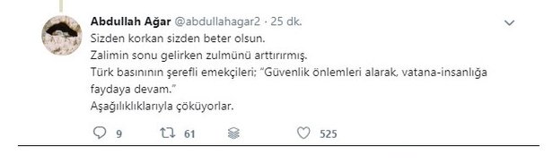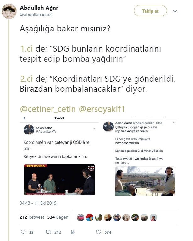 Saldırıyı azmettirenin PKK/YPG'nin sözcülüğünü yapan Sterk TV sözde gazeteci Aslan Aslan olduğu ortaya çıktı. Güvenlik Uzmanı Ağar, Twitter'dan sözde gazeteci Aslan'ı deşifre edip tweetlerine yer verdi.