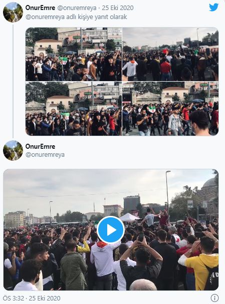 Aksaray meydanına çekilen görüntülerde tekbirler eşliğinde Arapça yazılı bezler ve ÖSO ve El Nusra bayrakları açıldığı görüldü.
