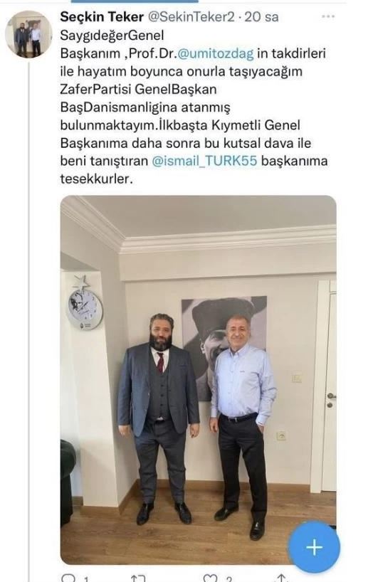 2009’da kullanmak amacıyla uyuşturucu madde bulundurmak suçundan hakkında işlem yapılan Teker, sosyal medya hesabından ‘’Saygıdeğer Genel Başkanım Prof. Dr. Ümit Özdağ’ın takdirleri ile hayatım boyunca onurla taşıyacağım Zafer Partisi Genel Başkan Başdanışmanlığına atanmış bulunmaktayım. İlk başta kıymetli genel başkanıma daha sonra bu kutsal dava ile beni tanıştıran @ismail_TURK55 başkanıma teşekkürler.’’ ifadeleriyle Özdağ’ın başdanışmanı olduğunu duyurdu.